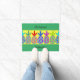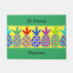 明るい緑と黄色のパイナップルのdoormat、"こんにちは友人へようこそ"という言葉を持つ。すべての単語を変更することができる。クリエイティブ感謝していファブリカにデザインの一部の要素を提供する。