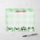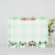 Personalizable Nameオプションを持つ緑色のギンガムパターン上にマンガに似た漫画のようなカエルを持つ子供のための可愛いレターヘッド。