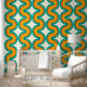 緑のオレンジ色の黄色の半円波パターン 壁紙