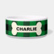 この田舎的な緑と黒のバッファローチェックパターンは、黒のタイポグラフィで犬の名前に合わせ、黒と緑のバッファローチェックを背景にして自分の好みに合わせた犬のボーンを特徴としています。あなたの犬は、この陶器製のドッグボウルが外に出るのを愛食べしてくれる。緑と黒のバッファローチェック犬のボーンペットベッドとアクセサリーとの調整デザイン:アーティスト© Susan Coffey.