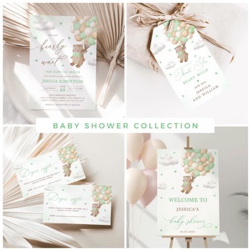 テディベア赤ちゃんシャワーギフトラベルと緑のバルーン!