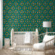 Boho幾何はっきりしたグリーンパターンの剥離とスティック壁紙。このパター自然ンで暖かいユニークアクセントの壁を作成するか、棚の内側やクレデンザの前面を装飾する。ホームデコ考えースタイルを作成するDIYおもしろいのボックスから。カラシナ緑。