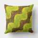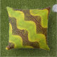 緑の古い曲線、茶色の背景に黄色の点 アウトドアクッション