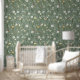 穏かわいらしやかな春と夏の雰囲気のための緑の背景にワイルドフラワーはむき出し、壁紙を貼る。