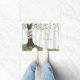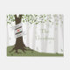 トランクのまわりで包まれたな旗がある緑の葉が付いている木が付いている森林のイラストレーションを特色にする玄関マット。 名前を個人化して下さい。