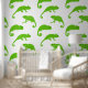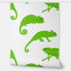 おもしろい壁紙は白い背景に大きな緑のカメレオンを特徴とする。自分の部屋に合う色に自分で色を変えることができる。