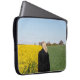 緑の草地に立つ黒いコートを着た女性 ラップトップスリーブ