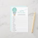 甘い水男女兼用色の象をソフトなミント緑のバルーンに搭載するこの愛らしい"ベビーワードスクランブル"ゲームで赤ちゃんシャワーを追加おもしろい。ゲストは、この魅力的な活動でベビー関連の言葉を自由に楽しむことができ保るすべての人に最適な愛する。今すぐ注文して、おもしろい、思い出に残る体験を作成!