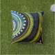 緑と青のアクセント付き幾何学的シームレスパターン抽象デザイン屋外ピロー。