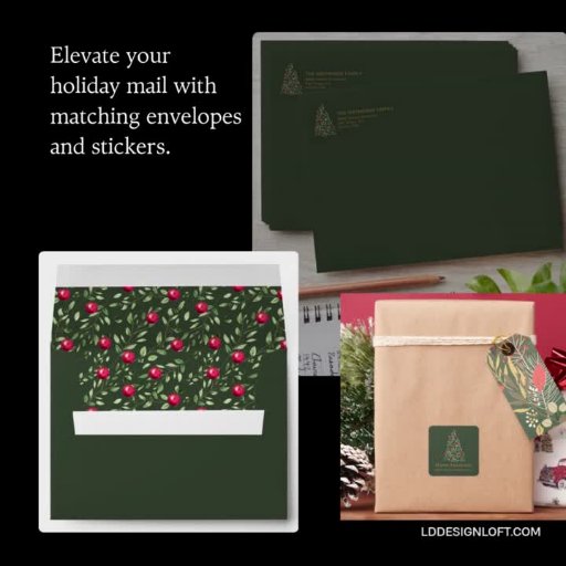 この祝ファミリ写真のホリデーカーエレガントドとスタイルの季節は、エレガンスとクラシックの魅力をブレンドモダンします。深いの緑の背景に赤い絵を描オーナメント、カスタマイズ可能な家族の名前と年で飾られたハンドウォーターの色のクリスマスツリーを特徴とする。右のパネルには写真の宇宙がパーソナライズされた含まれており、友人や愛する人にとって心のこもった記念品となっている。洗練されたフェスティバルとパーソナル – このホリデーシーズンの共有の暖かい願いと美しい思い出に最適なカード。金ゴールド色相タイポグラフィ。