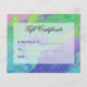 カスタマイズカラフル可能なグリーンブルーのギフト証明書。明るい芸術的スプラッシュデザインあなたの上の文字と言葉でパーソナライズ。