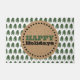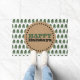 白い背景モダンに緑の松の木が並び、クラフト紙水玉模様の円にハッピーホリデー文字が並ぶ。このクリックカスタマイズデザインの文字に対するパーソナライズボタン。これらのアイテムは、コレクション内の他のアイテムと調整する。