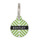 文字と緑と白のシェブロンのパタパーソナライズされたーンを特徴とするペットIDモダンラベルで、犬や猫をスタイルでドレパーソナライズされたスする。前面の名前と背面の電話番号を変更して、友人、家族、または犬や猫の愛好家のための一種のギフトを作成する。