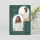 幾何学的モダンタイポグラフィエレガントグリーン2フォトアーチ卒業発表カード。