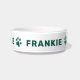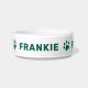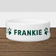 このユニークのペットドッグや猫のボウルはモダン、ボールを取り巻く可愛い肉柄のアクセントが付いたオールキャップのスタイルで名前を付けている。毛皮シンプルの家族のためのデザインと清潔。注意:暗緑色の文字と前部印刷の色を変更することができる。