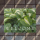 装飾的で歓迎されたdoormatは、さまざまなホスタや他の葉植物を含む緑の葉の写真のイメージを特徴とする。素敵なフローラデザイン!屋内を使用するか、カバーされた入口領域で使用する。フォーマットのサイズを選択する。
