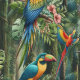 鮮やかな羽毛と独特の鳴き声を持つ熱帯鳥のイラストカラフルは、緑豊かな植物の密集した葉や森の間で優雅に漂い、多くの大事な行事のために設計された自然美しいの活気のあるタペストリーを作成しま鮮やかす。