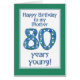 第80を用いる母のためのスタイリッシュな第80バースデー・カードは、手塗りのペーパーコラージュから、青、緑および白で作りま、レタリングおよびカードのボーダーと調整します。 容易にこの第80バースデー・カードの内部をカスタマイズことができます忘れないで下さい。