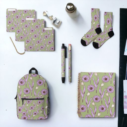 緑 紫 レトロ Y2K ファンキー ヒッピーフラワーパターン ラウンドシール