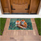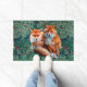 緑、葉、花の間の赤いキツネ ドアマット