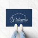 家の輪郭のシルエットと「ようこそ」という言葉を編集可能な背景色に合わせて、ファミリ名でカスタマイズできるドアマット(変更カスタマイズ可能)。