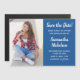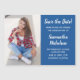 独自の青(編集可能な色)の写真カスタムの卒業「日付を保存」磁気カードを作成する。文字はモダンブラシフォント。このカードを編集するには、Zazzleの背景色ツールを使用する。