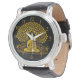 繊細なゴールドの仏像が緑豊かな葉に囲まれている 腕時計