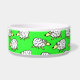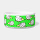 羊の犬の食べ物のボウル。おもしろいの羊の漫画のデザインの群れこのペットフードのボウル。犬、特に牧羊犬に最適。緑の背景