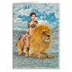 美し描写い若い女性と砂漠の風景の背景のライオンの3D's