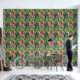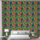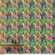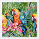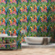熱帯のかわいらし葉と花の壁紙に緑、黄色および赤のカラフルのパロット。