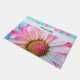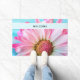 ピンクと白の花を鮮やか持つウェルカムドアマット。この魅惑的な花のクローズアップ写真は本当にあなたの注意を引く。中に歓迎のパステルブルーのスト書リップ。