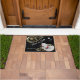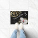 ドアウェルカムマット |名前パーソナライズされたと/または文字と絵を描、この手の白いユニコーンは、ポインセチアとホリーのクリスマスのリース彼女の首と額の飾り付け付きで飾らのまわりにれ – 彼女は美しいスパイラルレッドと金ゴールドの角と長い贅沢な流れるマネとテール。彼女は本当に美しいの物である – 金ゴールドのスクロールと雪の結晶で黒い背景に表示される – あなたの休日のゲストを歓迎する – 友人、同僚や家族。- ©WhimicalArtwork™で作成されたアートワークこれはミックスの一部であり、マッチ魔法のユニコーンクリスマスコレクション。