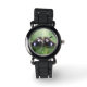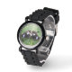 美しい熱帯蝶の写真を飾った美しい時計。この種は主に各翼に美しい虹色の明るい青い斑点を持つ黒である。その写真はマクロ写真を用いて撮影され、驚くほど詳細な結果を得た。