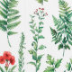 シダの種類の美し違うい優雅な緑の小枝、植物性スケッチ、白い背景に赤い小さな花ファズの種類の美しい優雅な緑の小枝違う、植物性スケッチ、白い背景に赤い小さな花
