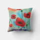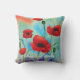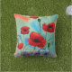 美しい水色ポピー柄モノグラム名屋外装飾用クッション。パーソナライズする独自の名前を追加できる。