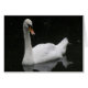 美しい白い白鳥の写真が入ったかわいいカード。白鳥は男性のミュートの白鳥で、くちばしの黒いバンプによって男性であることを知ることができる。白鳥は穏やかな湖の水の上を優雅に滑っている。