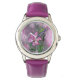 美しい紫色のピンクのユリの花の時計絵画の 腕時計