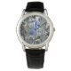美しい青いカケスがこの素晴らしい時計の木に座っている。