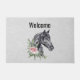 黒い馬の頭の美しいイラストレーションと首飾りファンシーのフローラの美しい装飾のウェルカムドormat。エレガント上品な絵画動物の