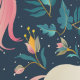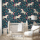 画像:アンジェリーナ・バンビナ | ShutterstockイメージID: 1061996207 |このパターンは、ダークブルーのフローラ背景にソフトパステルユニコーンを特徴としている。