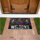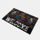 羽カラフルと2つのラヴェンズドアマット敷物。写真の二羽のカラスが歓迎の席に立った。ホームデコール。カラス、カラス、ブラックバードを愛する人に最適。色、サイカスタマイズズ、スタイルが可能。鮮やかな羽毛の背景の有無。ギフト素晴らしアイディア。