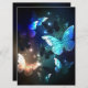 暗い背景白熱[赤熱]光を放つに素晴らしい、青と黄色の夜蝶。