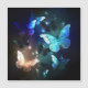 暗い背景白熱[赤熱]光を放つに素晴らしい、青と黄色の夜蝶。