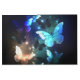 暗い背景白熱[赤熱]光を放つに素晴らしい、青と黄色の夜蝶。