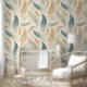 版画パターンカラフル壁紙を剥がして貼るモダンエレガント簡単取り外し可能な壁紙家庭生活ベージュとティール(緑がかった色)