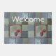 このウェルカムドオーマットは芸術と工芸品のデザインタイルで作られている。種々の鈍い緑と銅の松のコーンのタイルを含む。この写真は、実際にタイル職人のフェ・ジョーンズ・デイが暖炉のために作ったタイルの写真だ。