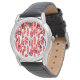この男達の時計は赤とレンガの赤の楕円形の繰り返しパターンを持っている散乱した白い楕円。