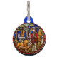 この聖アッシジのフランシスコのイメージであなたのペットを守りましょう。裏面にペットの名前と電話番号をカスタマイズすることができます。裏面は青い背景に白い文字で「動物の守護者 聖アッシジのフランシスコ」という文字が円形に縁取られています。表側のデザインは、聖フランシスコが動物たちを祝福する姿をステンドグラスで表現しています。