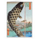 広重の1857年のプリント水堂橋と駿河台地区は、駿河台、神田川、水堂橋、江戸城、山富士の眺望を描いている。鯉のぼり鯉のぼりのまわりには、5月5日に少年のフェスティバルの場面を置く。浮世絵(うきよえ)は、17~20世紀に制作された木版画や木版画の写真で日本の、風景や歴史の物語、演劇、遊郭などをモチーフに制作された作品。日本の芸術的木版印刷の主要なジャンル。ZazzleのFloating Worldストアは、これらの歴史的な宝物を色に戻し鮮やか、基本的な老化問題を修正する。紙の質感と色彩値は、これらの芸術作品の古い美しいを明らかにするために維持される。