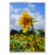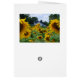 美しいヒマワリの畑には、背の高いヒマワリが立っている。カードの裏には別のひまわりの写真がある。